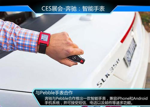 在這屆CES展會(huì)上,奔馳與Pebble合作推出了一款智能手表,兼容iPhone和Android手機(jī)系統(tǒng),并可接受短信、電話以及郵件等諸多功能。這款智能手表由一塊1.26英寸的背光液晶屏組成,同時(shí)還融入藍(lán)牙系統(tǒng)。目前奔馳正在研發(fā)新的技術(shù)可使這款手表顯示用戶車輛的燃油情況、實(shí)時(shí)位置、車門鎖檢查功能等,對(duì)于車主而言這些日常關(guān)注的小細(xì)節(jié)未來(lái)均可出現(xiàn)在該手表上,而車輛遠(yuǎn)程鎖止功能奔馳也有望將其運(yùn)用在該手表中。此外,融入奔馳技術(shù)的Pebble智能手表還可以震動(dòng)的形式提醒駕駛者前方的道路狀況,如交通事故、道路維修以及拋錨車輛等,大大提升了駕駛者的方便性。