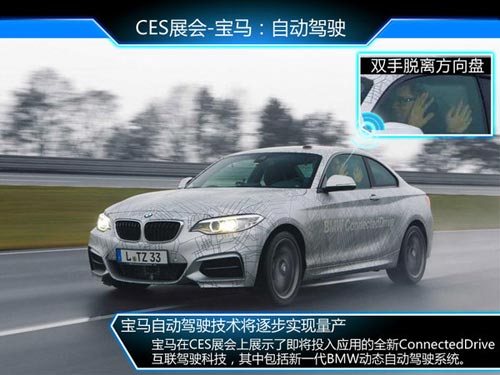 除知名豪華品牌奔馳外,寶馬在此次CES展會(huì)上也帶來(lái)了不少前瞻科技,包括即將投入使用的ConnectedDrive互聯(lián)駕駛科技以及與i3車型匹配的智能手表遠(yuǎn)程管理系統(tǒng)等。以自動(dòng)駕駛技術(shù)為例,ConnectedDrive互聯(lián)駕駛科技集成了全新BMW動(dòng)態(tài)自動(dòng)駕駛技術(shù),并通過(guò)提供一臺(tái)2系車型進(jìn)行試驗(yàn),這項(xiàng)技術(shù)未來(lái)也將逐步應(yīng)用在量產(chǎn)車型,并可實(shí)現(xiàn)130km的時(shí)速下完成超車。