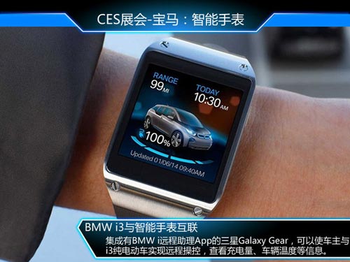 與奔馳相同,寶馬與三星合作也推出了一款智能手表,具備三星Galaxy Gear智能手表高級(jí)互聯(lián)的功能,不過(guò)這款手表僅能夠應(yīng)用在寶馬i3的電動(dòng)車上。通過(guò)這款智能手表,車主可以獲取現(xiàn)階段i3的車輛信息,如電池的容量、充電時(shí)間等,還可通過(guò)智能手表操控車窗和車門的開閉及鎖止,并將在手表上輸入的目的地傳輸至汽車導(dǎo)航系統(tǒng)中,為車主出行做好準(zhǔn)備。