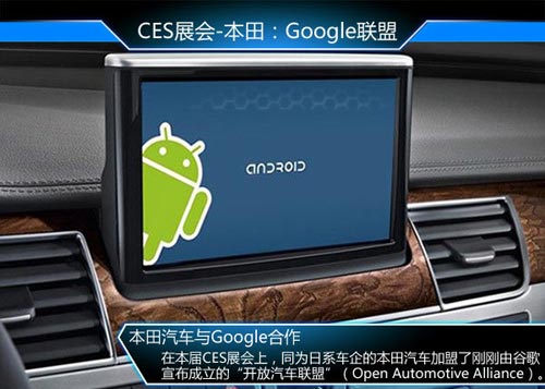 在本屆CES展會(huì)上,同為日系車企的本田汽車加盟了剛剛由谷歌宣布成立了的“開放汽車聯(lián)盟”(Open Automotive Alliance)。網(wǎng)通社從谷歌內(nèi)部人士處獲悉,這個(gè)汽車聯(lián)盟成員除本田外,還包括通用、奧迪、現(xiàn)代以及英偉達(dá)(芯片制造商)等5家車企組成。這些車企對(duì)全新谷歌的車內(nèi)操作系統(tǒng)進(jìn)行檢測(cè),逐步實(shí)現(xiàn)在旗下全系車型中使用。