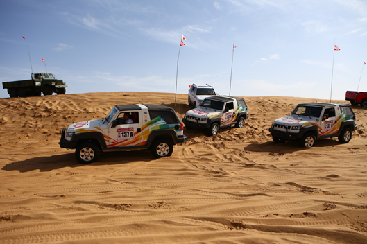 是朋友,也是對手。在阿拉善這樣一個越野競技的大舞臺上,經常可見到朋友的“廝殺”。這不,王原就和一個牧馬人車主展開了一場激烈的比賽。“‘越野利器’牧馬人實力有口皆碑,跟它比很多越野車都沒戲。而我們購買一輛北京(BJ)40只需要牧馬人價錢的1/3,性能卻達到了八成功力,還是很超值的。作為一款純粹的硬派越野車,北京(BJ)40還是很讓我滿意的”,王原如是說。