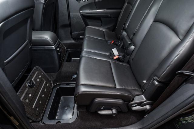 無論是漢蘭達、銳界還是道奇酷威,在車內空間實用性的設計上都有精巧之處,充分利用了座椅組合變化和隱形儲物設計增加了車內相對空間的使用效率。從座椅變化來看,三款車的第二排和第三排座椅可以進行單獨折疊或整體放倒,調整起來具有很大的自由性,如此節省出來的空間能夠很好放置諸如童車、帳篷等出行必備的配置。尤其是道奇酷威,就連副駕駛座都采用了可折疊模式,全部放平后可以獲得近2000L的大空間,不僅可以放得更多,還能放得更長,256種座椅的不同組合變化,完全可以滿足全家出行的空間需求。
