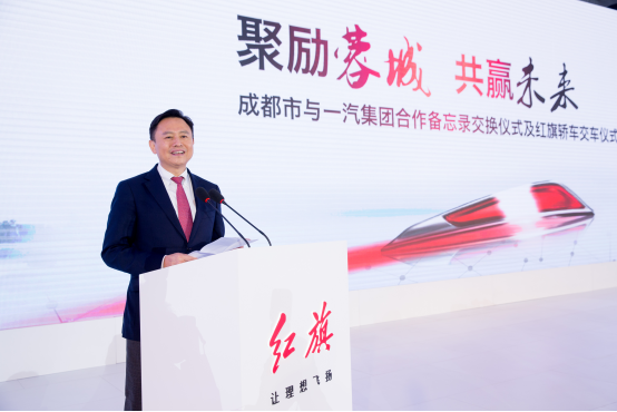 交車儀式上,中國第一汽車集團公司董事長、黨委書記徐留平在致辭中表示:“在十九大報告中,習總書記指出,中國特色社會主義已經進入了新時代,這是一個全國人民團結奮斗、不斷創造美好生活的新時代。中國一汽積極響應中央的號召,認真貫徹習近平總書記的重要指示,努力打造世界一流的汽車企業集團,并始終把為中國人民的美好生活,尤其是出行方面提供高品質服務作為自己的使命。此次再度攜手,是中國一汽與成都市在出行領域做出的積極有益探索,是雙方在城企合作模式方面的一次升級,也是雙方不斷加強合作的進一步深化和延續。”成都市委副書記、市長羅強則表示,作為共和國長子,中國一汽在推動中國汽車產業發展方面取得了輝煌成績。我們相信一汽全面推行振興紅旗品牌戰略,不僅代表中國制造的強勢回歸,更承載著國人對美好生活的向往和追求。