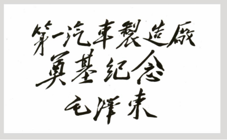 選址定下,接下來就是抓緊行動了。事實上,建廠初期還沒有正式的廠名。如何命名是一件意義非凡的事。1953年6月下旬,主席欣然在一張八開的宣紙上揮筆寫下“第一汽車制造廠奠基紀念”十一個蒼勁有力的大字。題詞轉送到一汽后,全廠職工備受鼓舞,并立即請來手藝精湛的老石匠,把廠名鐫刻在一塊精挑細選的漢白玉石上。