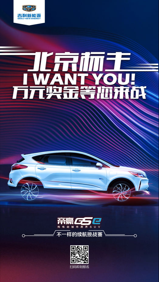 你手頭是否正巧有北京新能源小客車指標(biāo)?如今這個(gè)指標(biāo)不僅是買車的通行證,更是贏取近5萬元現(xiàn)金大獎(jiǎng)的門票!無論你是北京老司機(jī),還是遵紀(jì)守法街頭車神,吉利帝豪GSe純電動(dòng)城市跨界SUV 限時(shí)續(xù)航挑戰(zhàn)賽都是你不容錯(cuò)過的舞臺(tái)。從六環(huán)到二環(huán),完成緊張刺激的續(xù)航挑戰(zhàn)任務(wù),和隨車網(wǎng)紅主播談笑風(fēng)生,領(lǐng)取漫天飛舞的紅包獎(jiǎng)勵(lì),都在期待你的到來!現(xiàn)挑戰(zhàn)賽報(bào)名通道已開啟,豐厚獎(jiǎng)勵(lì)等你來戰(zhàn)!