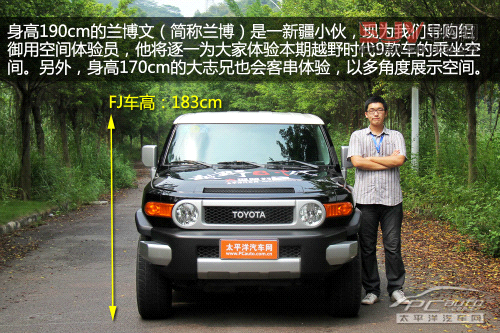 接下來就到了越野時代開篇文章的重頭戲:空間體驗部分。一般的空間體驗文章 都喜歡用高個兒模特,大空間的車這樣搞自然是沒問題的,因為高個兒都能坐得舒服的話,一般人對空間絕對不會不有什么意見。但高個兒如果坐不進去呢,我們普 通人該怎么參考?鑒于這種情況,我們導(dǎo)購組做了個小創(chuàng)新,采用了身高為190cm的蘭博和身高為170cm的大志為大家組合呈現(xiàn)這9款SUV的乘坐空間。(由于9款車中只有普拉多和帕杰羅有第三排座椅,而且連大志都坐不下,故我們就不浪費篇幅加入第三排空間的體驗了)