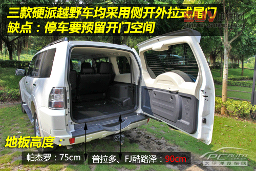 另外,在上面的圖中我們還測量了尾門最低開口的離地高度,普拉多、FJ酷路澤這兩款豐田硬派SUV當(dāng)仁不讓地成為離地最高的得主,在搬運較重物品時,這兩款車的車主估計得多費點勁兒。城市SUV里面最高的是SRX,80cm的離地高度比要對手們要高出一截兒,搬家的時候可別先選它。
