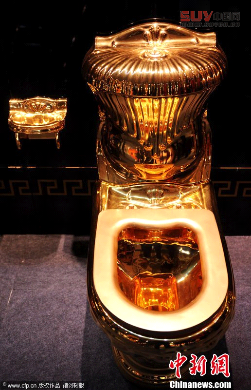 2008年1月19日至20日, 深圳國際頂級私人物品展登錄深圳會展中心。圖為純金馬桶亮相。