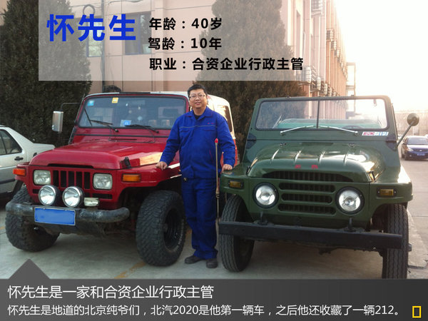 如今,懷先生周圍的朋友已經開始玩日產、jeep的越野車。但懷先生還是守著他的2020,每天開著它上下班。懷先生說,幾年前他就想換車,畢竟現在開的車已經接近二十歲高齡,但2008年車展上見過北京40,就對它念念不忘。可惜這款車遲遲不見上市。期間他也曾考慮過jeep牧馬人、哈弗H5。