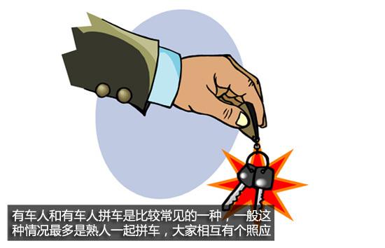 常見的拼車方式大概有兩種,首先是無(wú)車人和有車人拼,這種應(yīng)該是所占比例比較大的一種,一般這種拼車方式多為無(wú)票或是路程較近的車友會(huì),還有就是同事或朋友一起結(jié)伴而行。