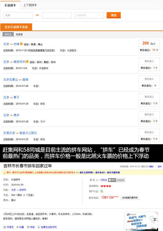 與陌生人拼車所占比例較大,例如趕集網(wǎng)和58同城是目前比較主流的拼車網(wǎng)站,“拼車”已經(jīng)成為春節(jié)前最熱門的品類之一,帖子的數(shù)量和更新度都遠(yuǎn)遠(yuǎn)超過(guò)了其他品類,而大家比較關(guān)心的拼車價(jià)格一般是比照火車票的價(jià)格上下浮動(dòng)。不過(guò)網(wǎng)上結(jié)實(shí)的同伴往往相互不了解,安全問(wèn)題與相互信任成為了影響這種拼車方式的最大障礙。