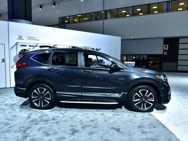 相比現(xiàn)款車型的圓潤風格,全新CR-V使用了突出的前后輪眉和收緊的車門設計,側面看起來更加緊致。另外,新車依然保持了平直的車型線條,并配有新樣式的輪圈。車尾方面,新車設計同樣緊致,依然位于D柱上的尾燈采用了全新設計。雙色后保險杠凸顯了全新CR-V的時尚感,而雙邊共兩出式排氣又為新車帶來了運動感。