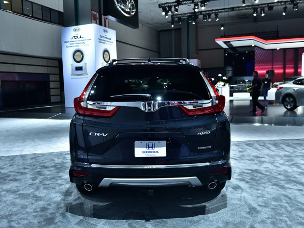 全新一代本田CR-V前臉使用了本田新的家族式設計理念,前大燈線條更加動感,六邊形的前格柵上部采用了大面積的鍍鉻裝飾,下半部則采用了黑色蜂窩狀設計。新車前保險杠的線條更加立體,兩側霧燈上方加入了褶皺設計,頗有力量感。新車的大燈使用了LED光源,在配置方面做到了與時俱進。