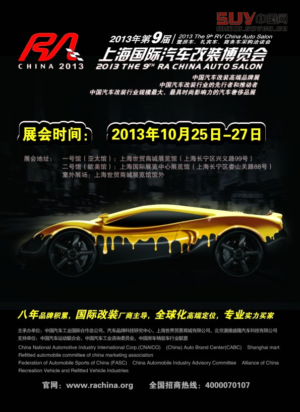 一、架構升級——第九屆RA改博會新引入了中國汽車工業國際合作總公司參與主辦,進一步提高了改博的主辦架構,中汽國際是中國會展界具規模和影響力的中央企業,擁有二十多個全資或控股子公司及眾多的專業買家資源。其獨立或參與主承辦的各種展覽的總面積,已經超過了200萬平方米。特別是參與承辦的北京國際汽車展覽會(Auto China)和上海國際汽車零部件、維修檢測診斷設備及服務用品展覽會(Automechanika Shanghai ), 已經成為具有國際一流品質的超級展會.在業內享有廣泛的贊譽.