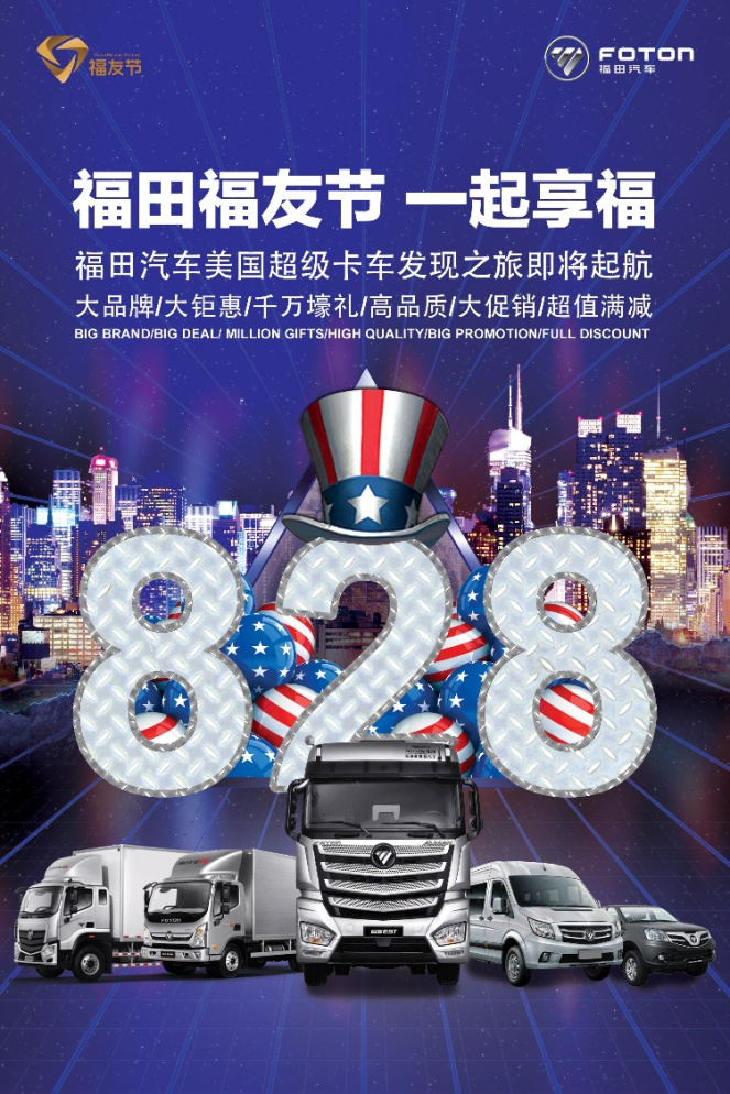 “福友節”,為福田汽車車友而生,首屆“福友節”將關愛貫穿全年,福田汽車為用戶謀求福利的決心無以言表。從“尋找福田有‘擎’人”到“828福友狂歡趴,千萬豪禮大派送”,再到即將開啟的福田汽車美國超級卡車發現之旅、福友年終感恩回饋等活動把福田汽車“福友節”對用戶的關愛延續。