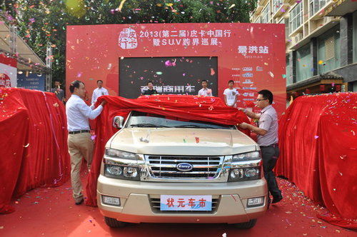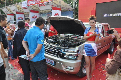 在2013(第二屆)皮卡中國行暨SUV跨界巡展景洪站的活動現場,我們迎來了一位貴客,那就是全新上市的奇瑞愛卡皮卡。愛卡是奇瑞旗下的首款皮卡車型,搭載了2.2L汽油發動機和2.5柴油發動機,售價在6-8萬之間。
