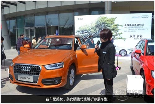 此次車展首創(chuàng)活動(dòng)現(xiàn)場(chǎng)主持人會(huì)到各展廳做品牌介紹,讓大家從品牌淵源和公司背景真正了解參展商的信息。走進(jìn)德辰奧迪4S店,美女銷售代表為我們精彩的車型介紹。