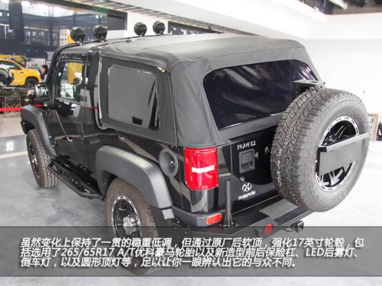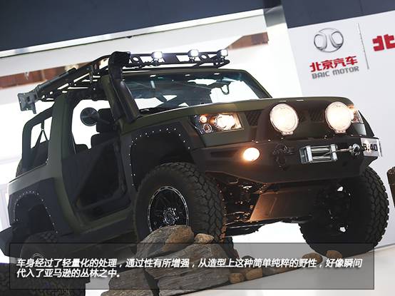 與量產版車型相比,經過改裝之后的北京(BJ)40攀巖版更加貼近了我心目中BJ212的形象,也更容易喚醒每個人心中的原始野性。其中,攀巖版的變化包括了新造型的前后保險杠、強化了的17英寸輪轂、金屬輪眉、輕量化越野半門和復古后視鏡。